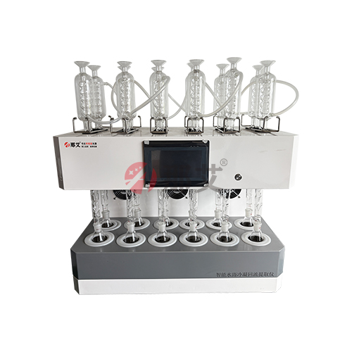 實驗室為了加快反應速度很慢或難以進行的化學反應,常常采用回流與冷凝裝置,保證反應進行完全,并防止反應物、產物或溶劑揮發逸出體系。那艾智能水浴冷凝回流提取儀(專利編號:CN220496410U)采用智能恒溫水浴替代傳統水浴鍋,標配12個加熱單元,滿足大樣品量的需求;內置四個測溫點和耐高溫循環水泵來保證水浴溫控均勻;一鍵啟動,自動雙區控溫,且缺水自動補水,可自動排水,避免長時間菌類滋生。適用于食品及食品包裝物部分項目的檢測前處理,中藥科研單位、加工企業、生產企業等樣品浸出物、含量測定、理化鑒別等實驗。